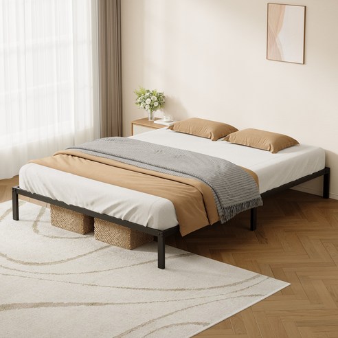 설치도 정말 간편했어요. 복잡한 설명서 없이도 남자친구와 둘이서 뚝딱 완성했답니다. 튼튼한 철제 프레임인데도 디자인이 심플해서 그런지, 오히려 침실이 훨씬 더 정돈되고 깔끔해 보이는 효과가 있었어요. 블랙 계열이라 어떤 침구와도 잘 어울리고, 덕분에 침실 분위기가 한층 더 차분하고 세련되게 변한 것 같아요. 혹시나 매트리스 밑 공간이 좀 아쉬웠다면, 이 프레임 덕분에 매트리스 지지력이 좋아져서 훨씬 안정적인 수면 환경을 만들 수 있다는 점도 정말 만족스러웠답니다.